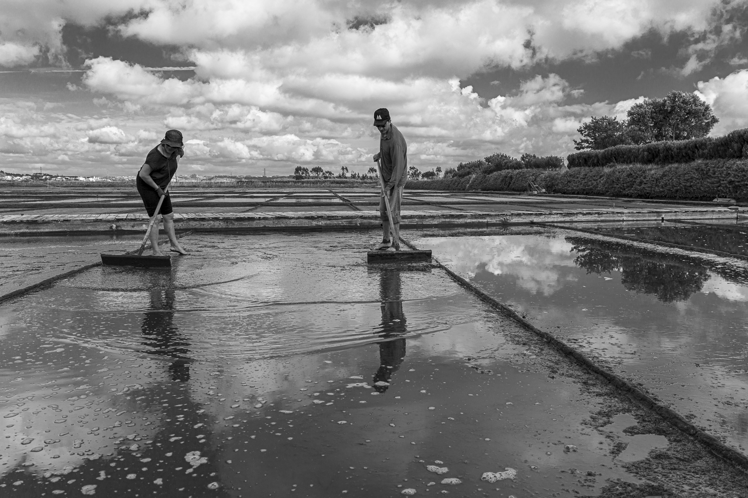 As lamas que ficam dos detritos são retiradas à custa do esforço braçal. Este processo é moroso e trabalhoso. Um processo de paciência e resignação do marnoto.